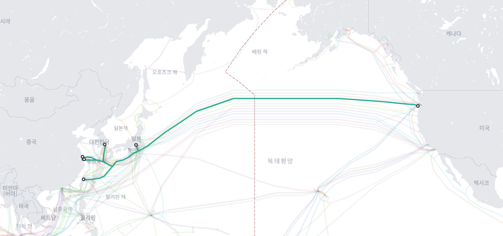 참고로 Submarine Cable Map이라는 사이트를 보시면 전 세계에 구축된 해저케이블 지도를 볼 수 있습니다.