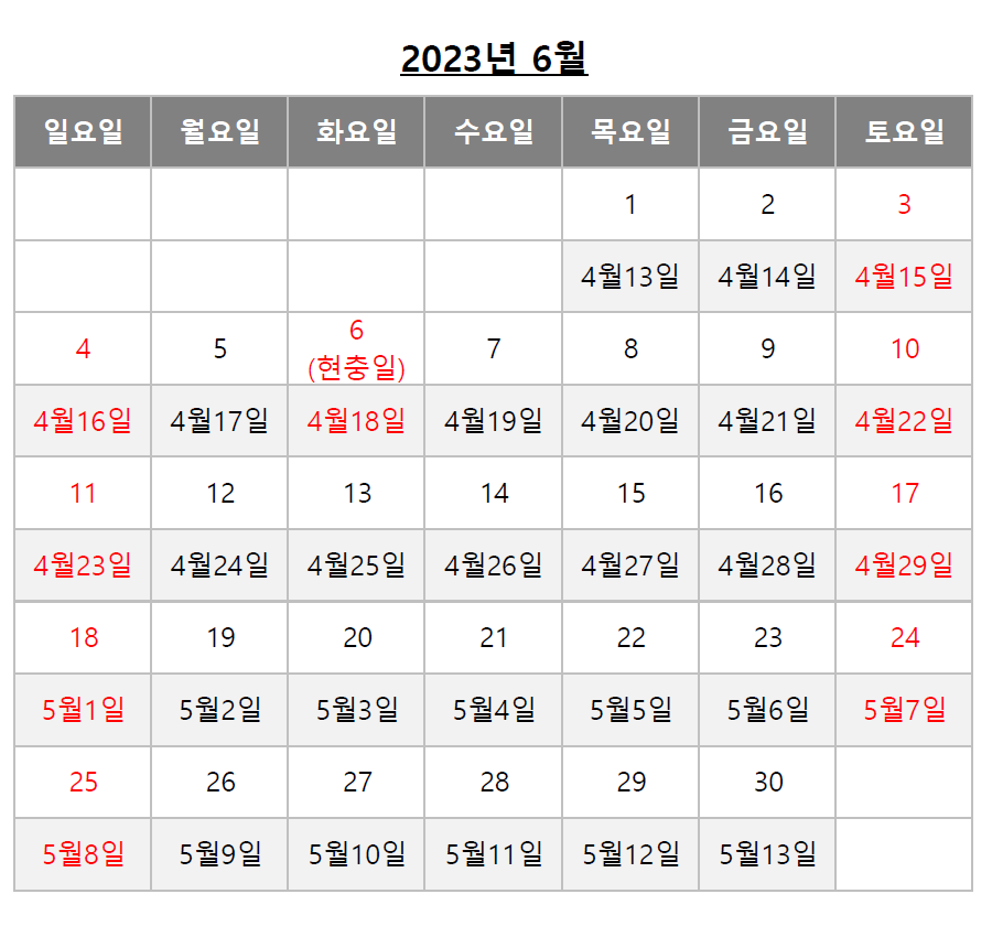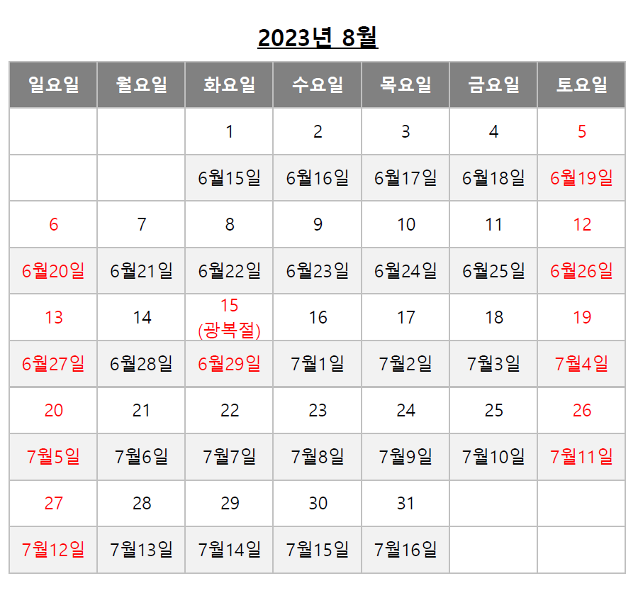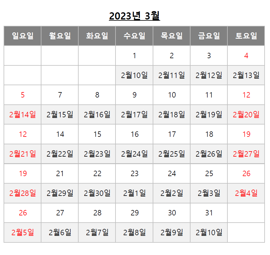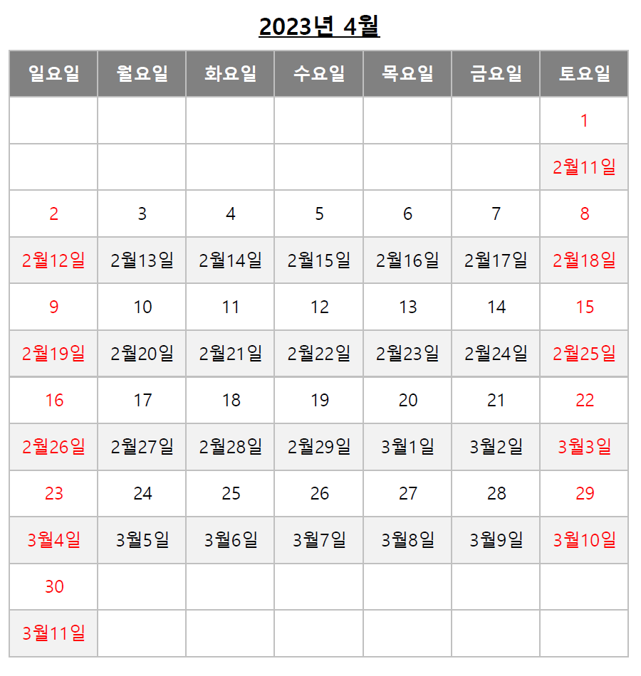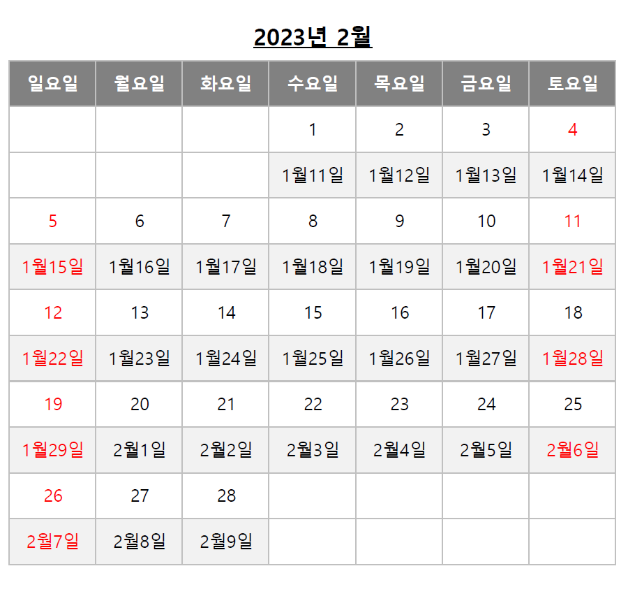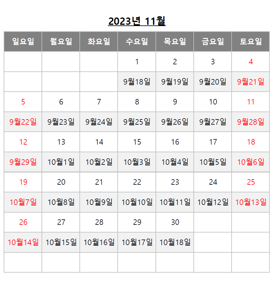 아래 음력달력을 참고하시면 쉽게 확인 가능하십니다.