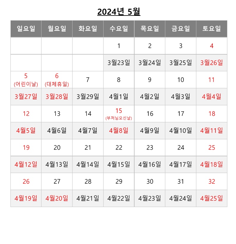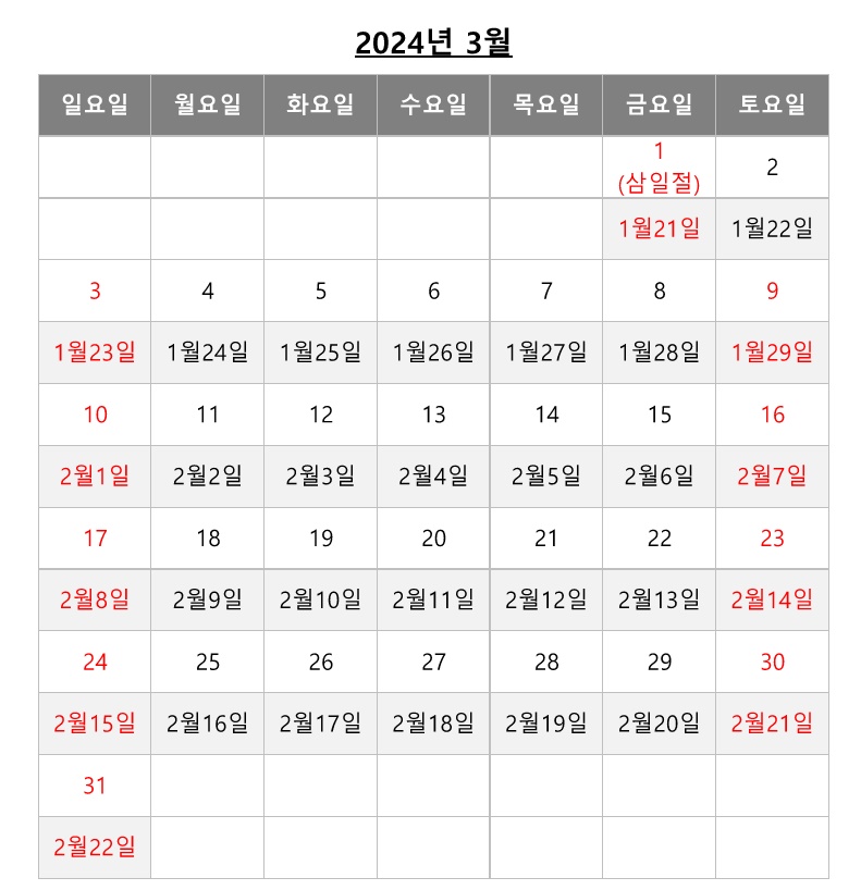 아래 음력달력을 참고하시면 쉽게 확인 가능하십니다.