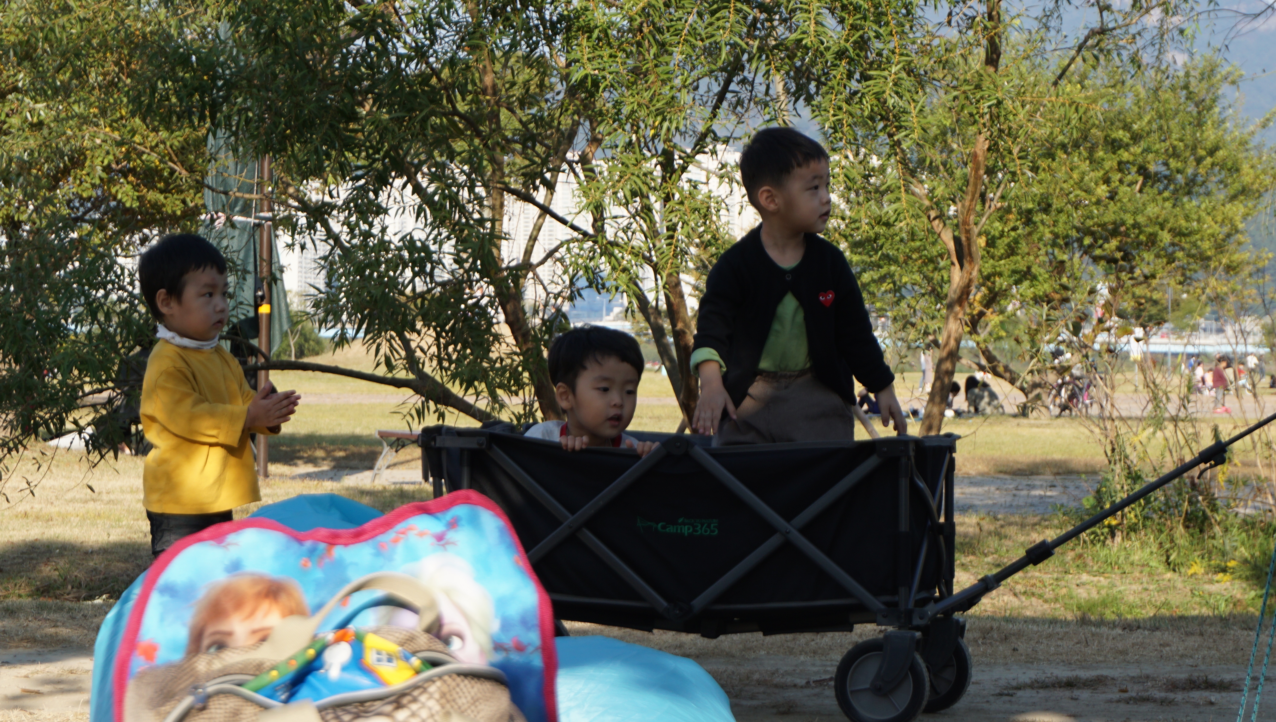 아이들 많이 있을때도, 웨건에 아이들 태워주면.. 아이들 에너지 소모시키기 딱 좋습니다 ㅋㅋ