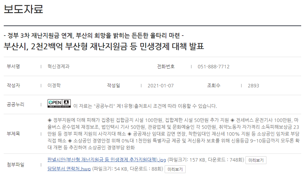 2021년 1월 7일에 부산 시에서는 2천2백억 규모의 부산형 재난지원금 지원 발표를 하였습니다.