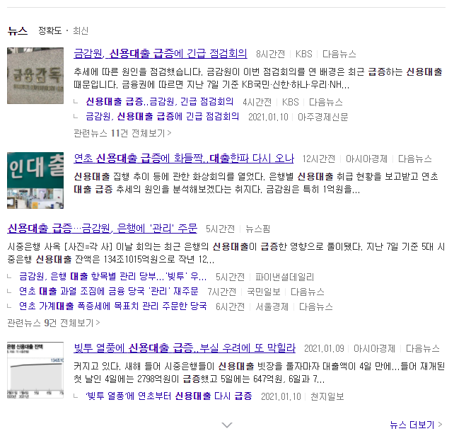 - 5대 시중은행 신용대출 잔액 2021년 1월 4일간 4533억 원 급증
