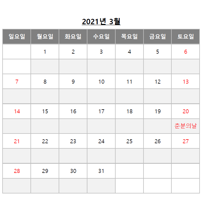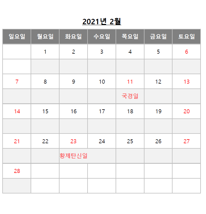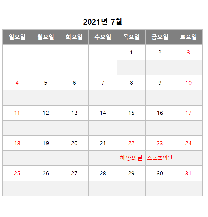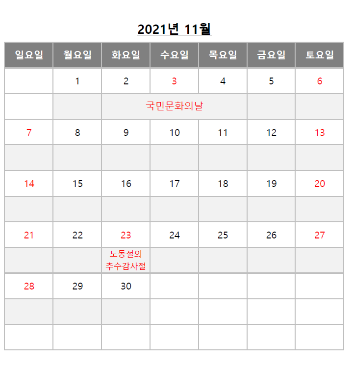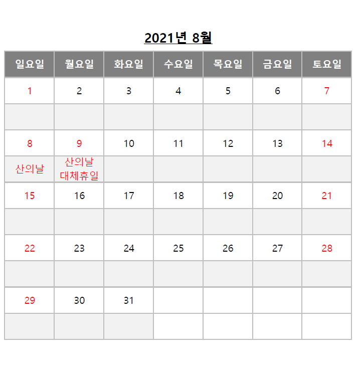 | 2021년 대체공휴일 달력 (하반기 7월~12월, 음력포함) (0) | 2021.06.23 |