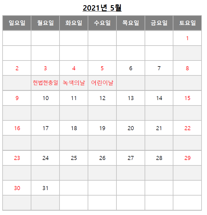 아래의 정리된 공휴일 달력 참고하셔서 업무를 보시거나, 여행계획 세우는데 참고 하세요.