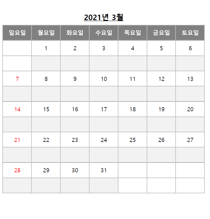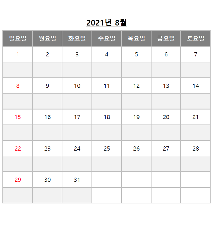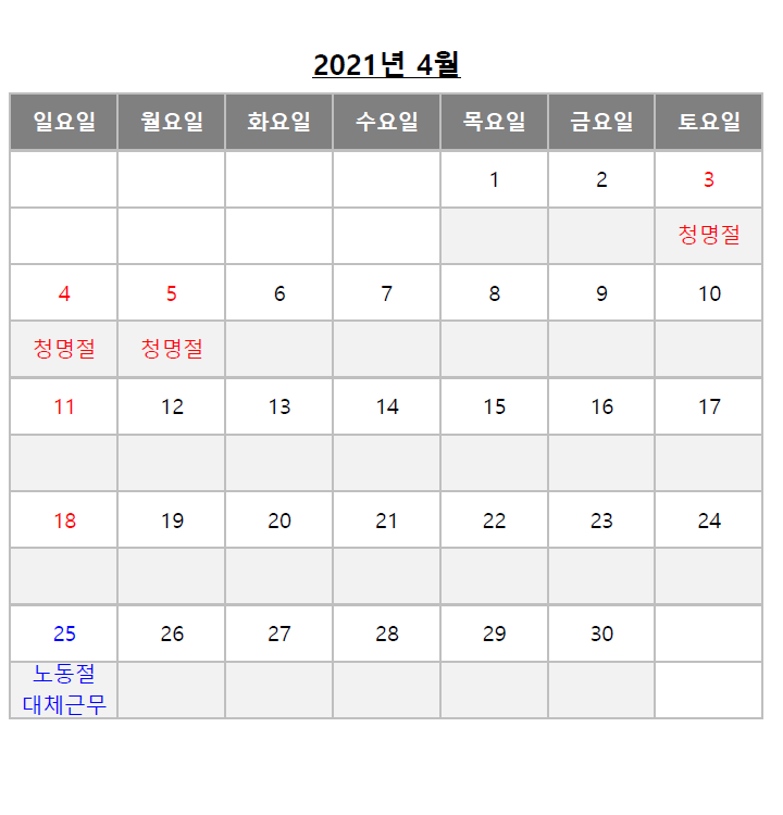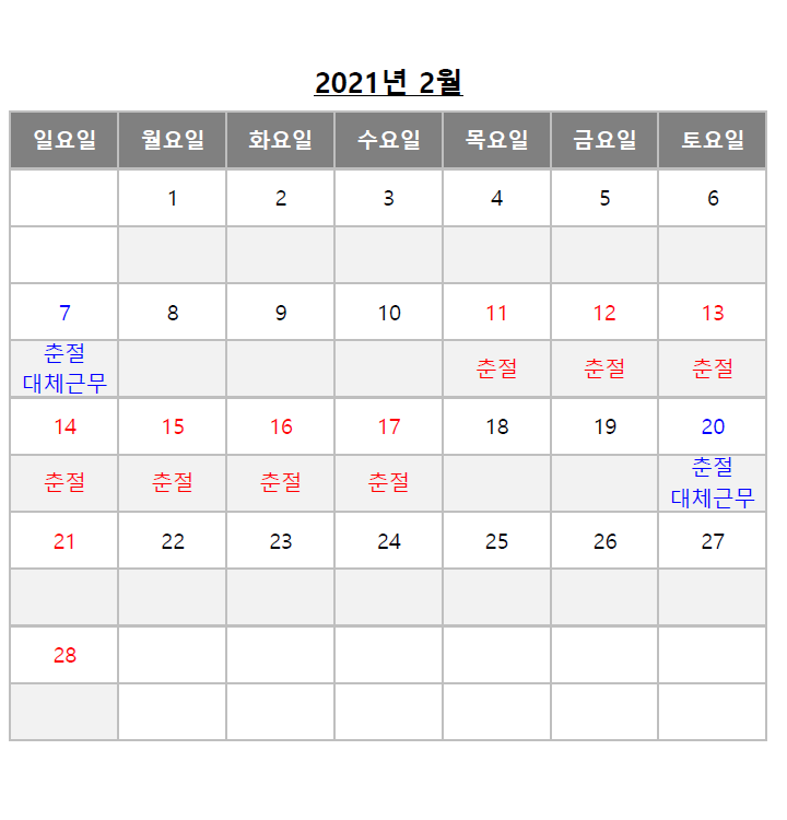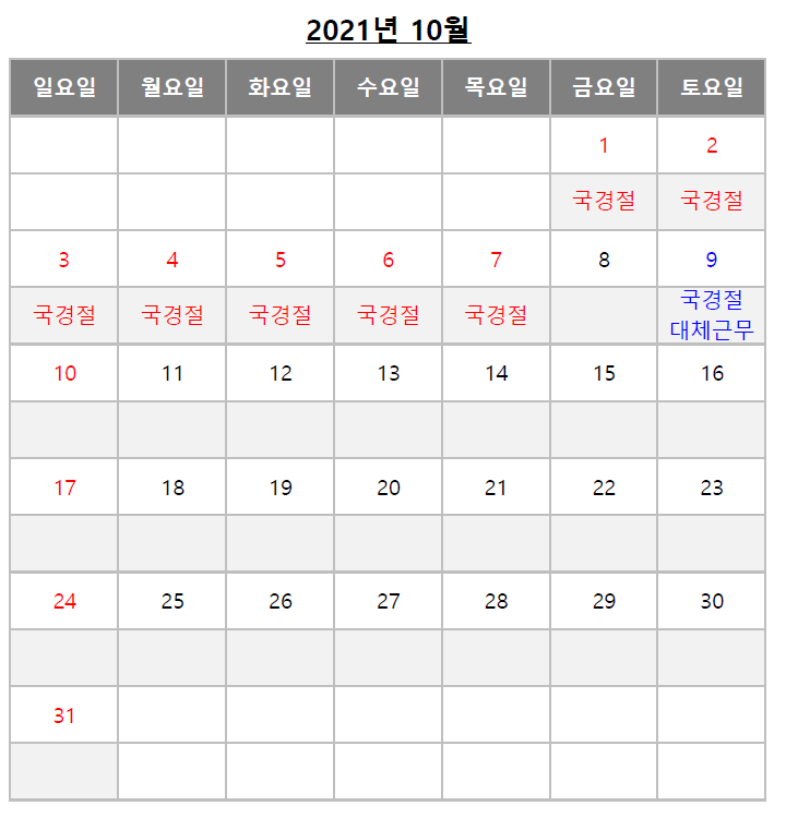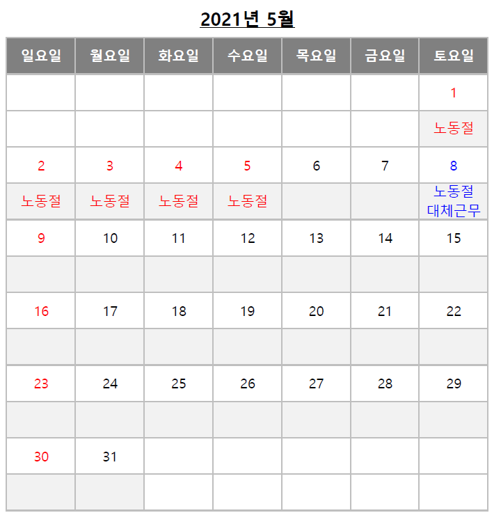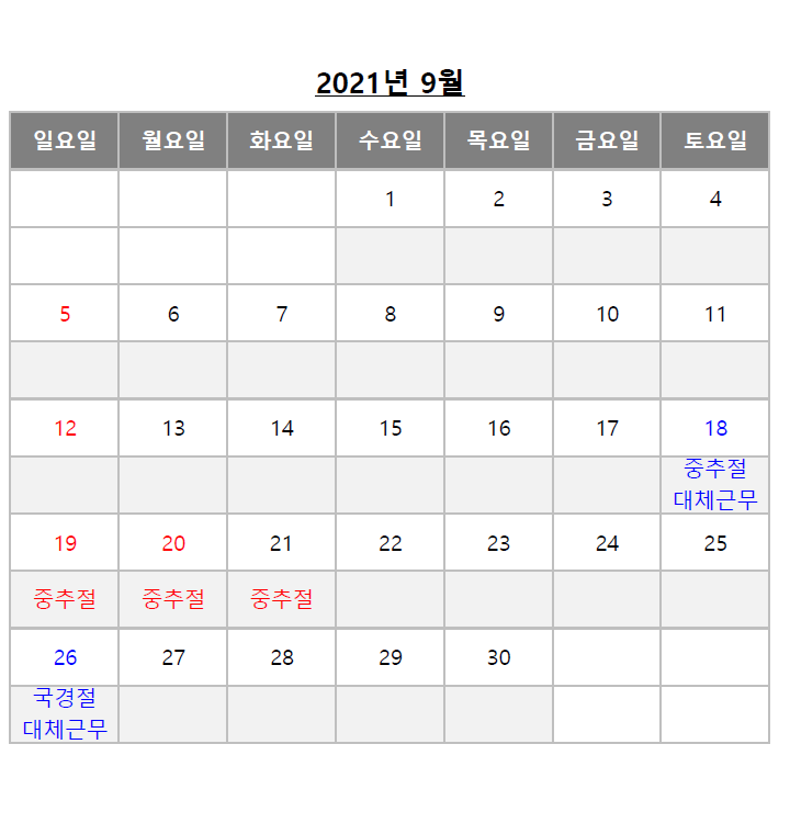 | 2021년 대체공휴일 달력 (하반기 7월~12월, 음력포함) (0) | 2021.06.23 |