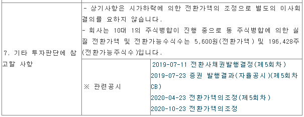5,600원으로 전환가액 적용 완료 후 주식이 내려옵니다.