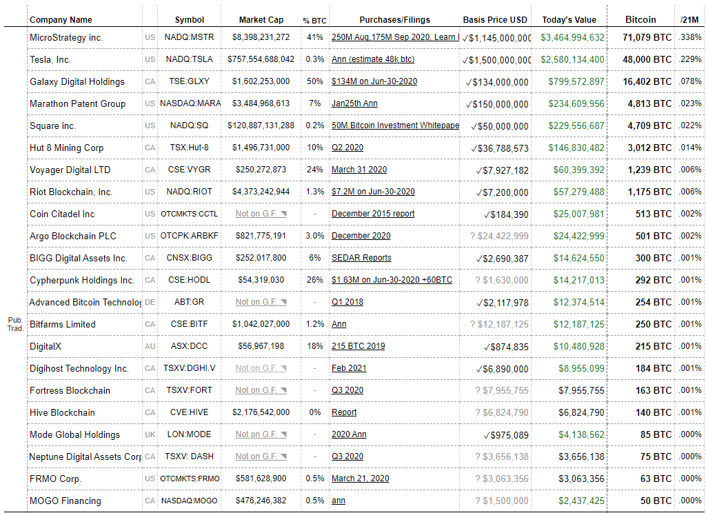 아래 1/2위에서 확인 가능하신 것처럼. 매수 금액으로는 MicroStrategy가 1위지만. 시가총액 면에서는 테슬라가 100배 높습니다. (비교불가)
