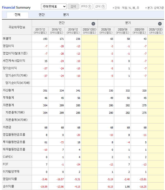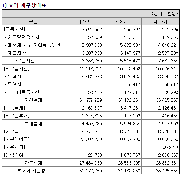 아래 요약 재무상태표를 보시면 가장 하단의 이익잉여금이 지속적으로 10억씩 마이너스되는 걸 볼 수 있습니다..