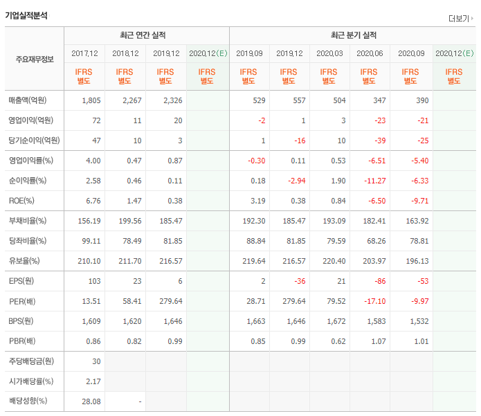 2017~19년에는 2020년에는 영업이익이 나빠진 걸 확인할 수 있네요.. 하지만 재무제표상 이익 잉여금을 400억 정도 보유하고 있기 때문에 크게 문제가 되지는 않습니다.