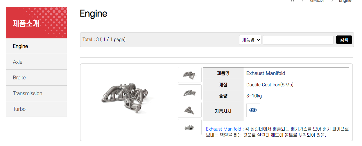 자동차부품의 주물소재를 제조, 판매로 주요 사업 (자동차 부품과 관이음쇠 제작)