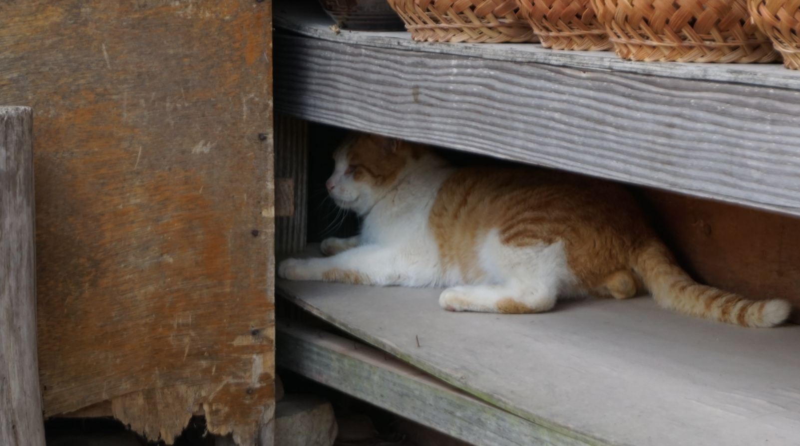 판매소 마루? 같이 물건 진열하는 아래 공간은 고양이 자리네요.. 오늘 장사에 지친 표정입니다.