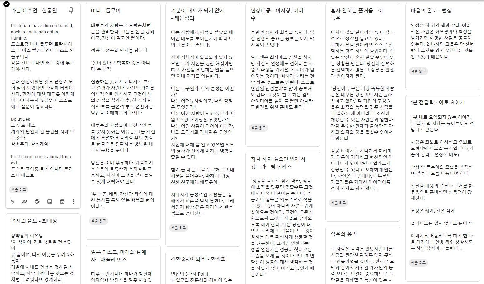(저는 구글 Keep을 통해 메모를 정리해 다시 한번 책의 중요한 내용을 되새김을 하고 있습니다)