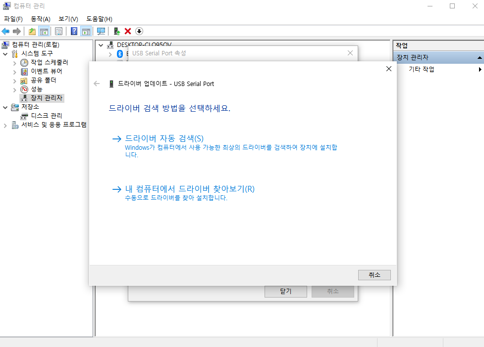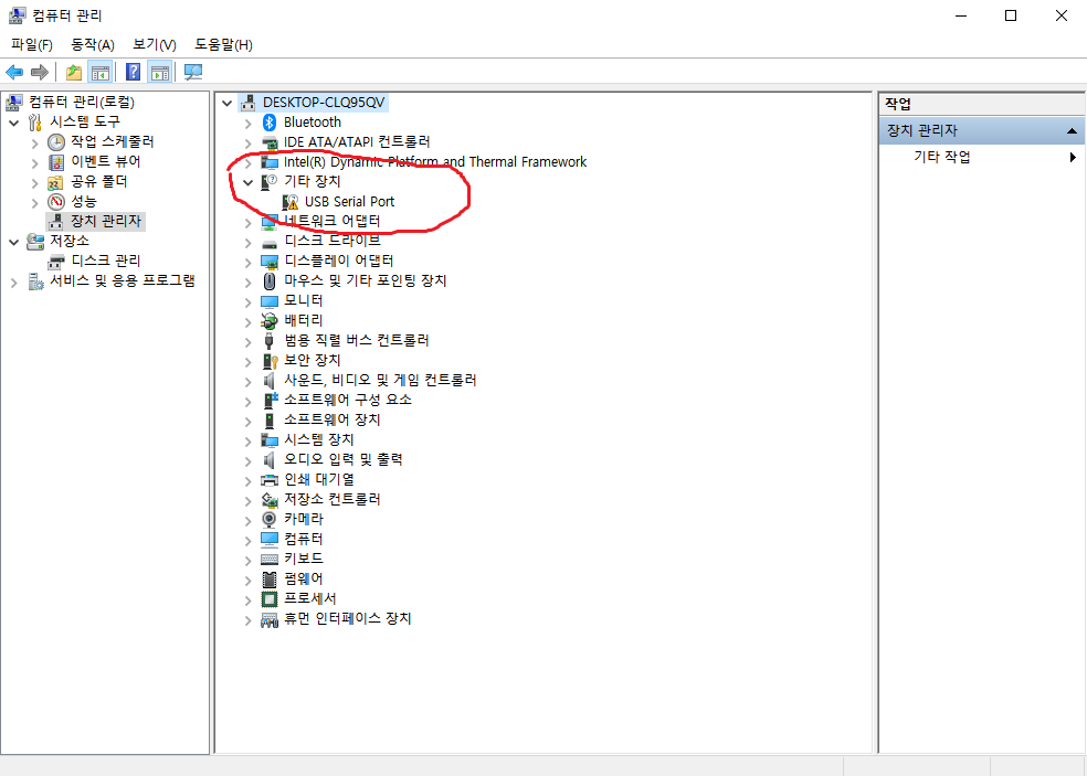 USB Driver를 다운로드하지 않으면, 인식을 하지 못하는 현상이 아래와 같이 발생됩니다.